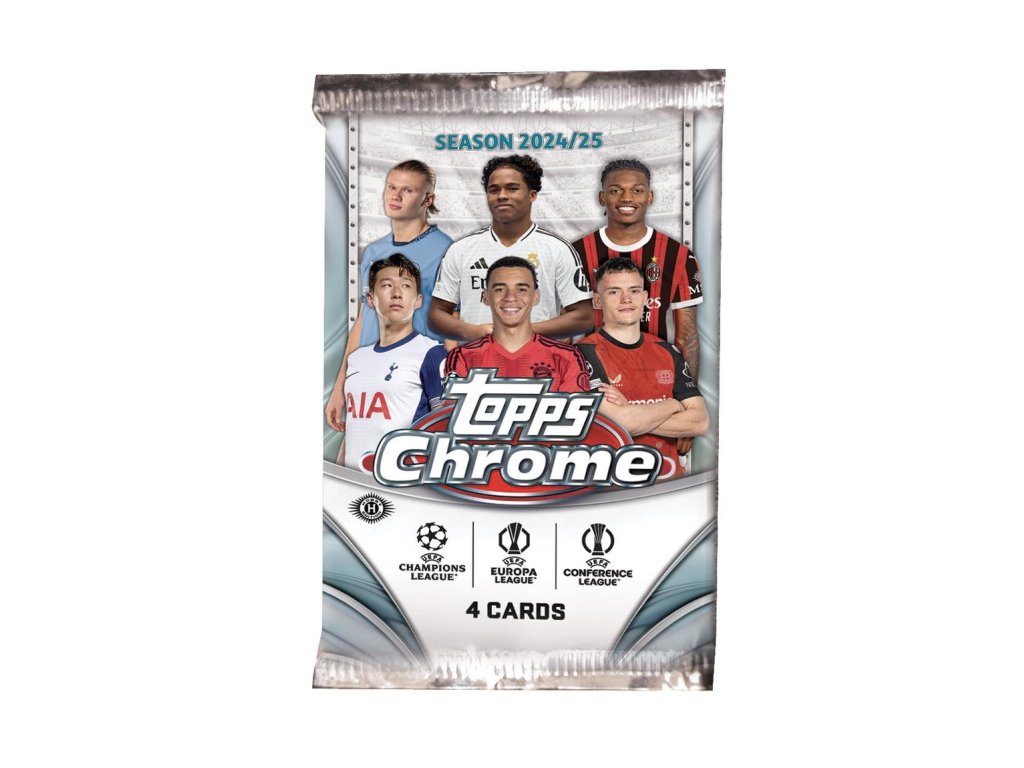 Topps Chrome 2024/25 UEFA Club Competitions Hobby Booster je cenově dostupný a kvalitní produkt pro sběratele fotbalových karet.