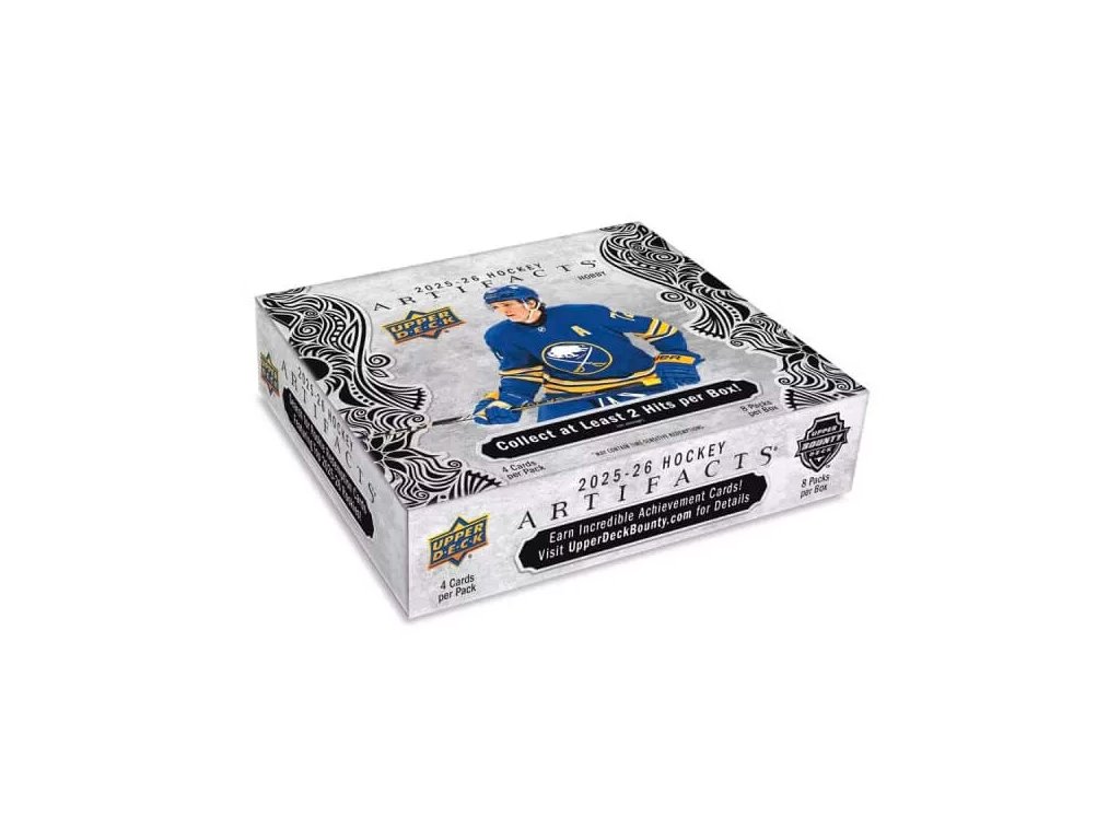 NHL Artifacts Hobby box 2025-2026 je balení 8 balíčků po 4 kartách. NHL Artifacts je set, který přináší mnoho podepsaných karet (včetně Hard signed), ale také legendy, rookies a další. Balíček někdy může obsahovat pouze 3 karty (v případě rozbalení Memorabilia či Aurum karty). Jedná se o velmi oblíbený set mezi sběrateli.