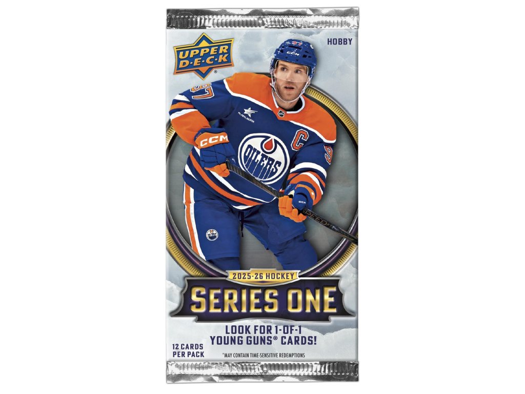 Edice 2025–26 Upper Deck Series 1 Hockey představuje prvních 250 karet základní sady, která zahrnuje 198 veteránů, 49 Young Guns nováčků a 3 checklisty.