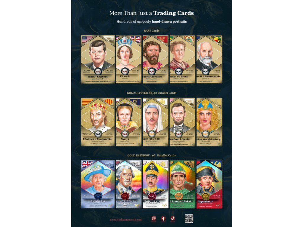 Ti nejmocnější panovníci, císaři, králové, prezidenti, předsedové vlády a další vládci světa pečlivě ručně vykreslení od profesionálních kreslířů, přináší, kromě sběratelské vášně, také příležitost se dozvědět něco nové z historie.